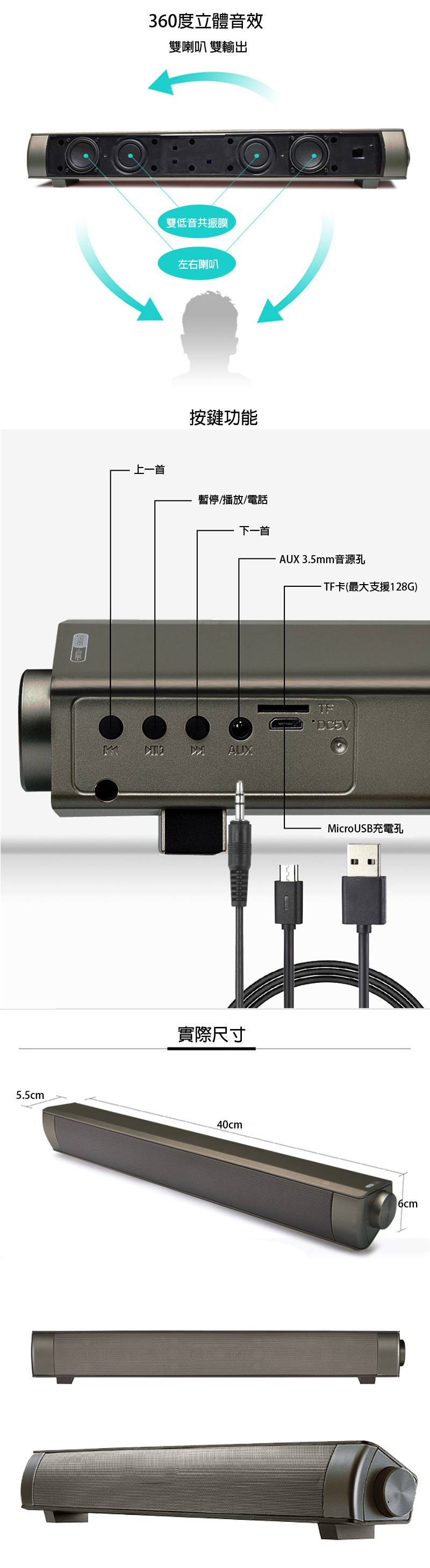 附控器(款式以到主) ★ 牙模式、AUX模式、TF卡模式 ★ 端配喇叭,音效立