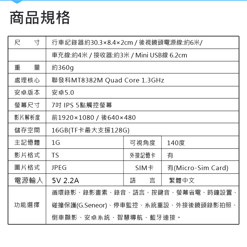★ 科MT8382M晶片,定度高,夜效果更好 ★ 安卓5.0 ★ 智慧航 ★ 7高解析