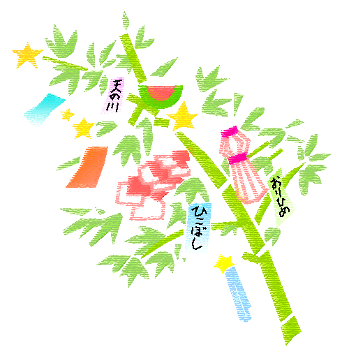 棚所指的即是「布」,在日本7/7的七夕不「七夕」而作「棚」。另外,片竹枝上的三──天の川、ひこぼし(彦星)おりひめ()分代表「河」、「牛郎」和「女」。充明一下,日中「」是男子的美,而「姬」是女子的美。