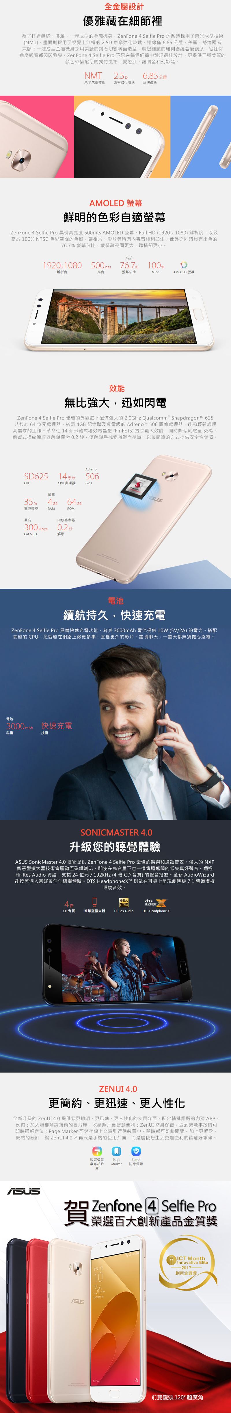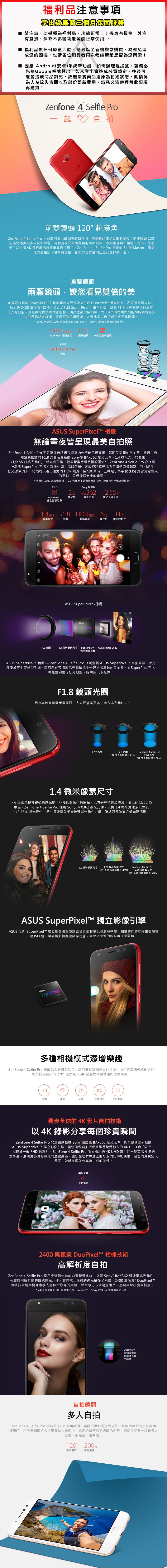 【ASUS】 ZenFone 4 Selfie Pro ZD552KL (4G+64G) 5.5八核超角智慧型手(福利品) ,推,箱,CP值,,,便宜,惠,介,排行,精,特,周年,,限