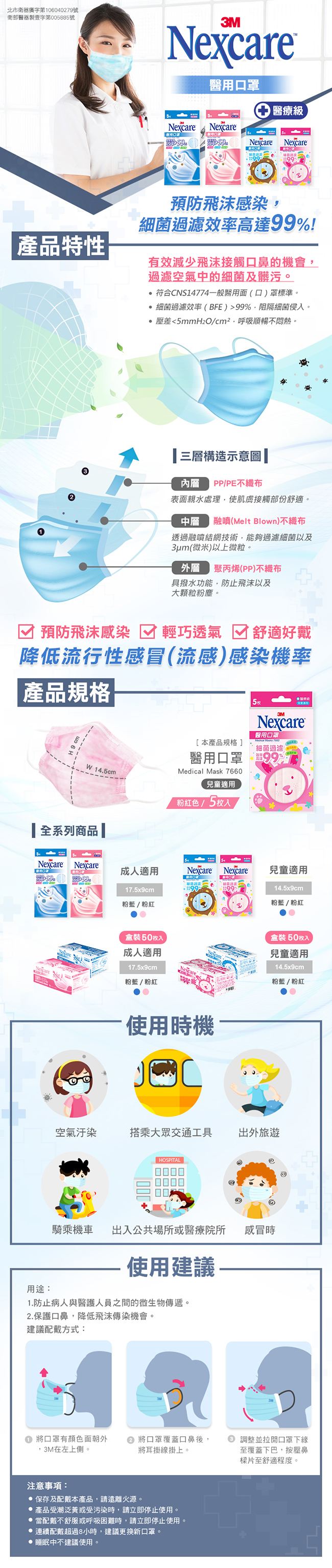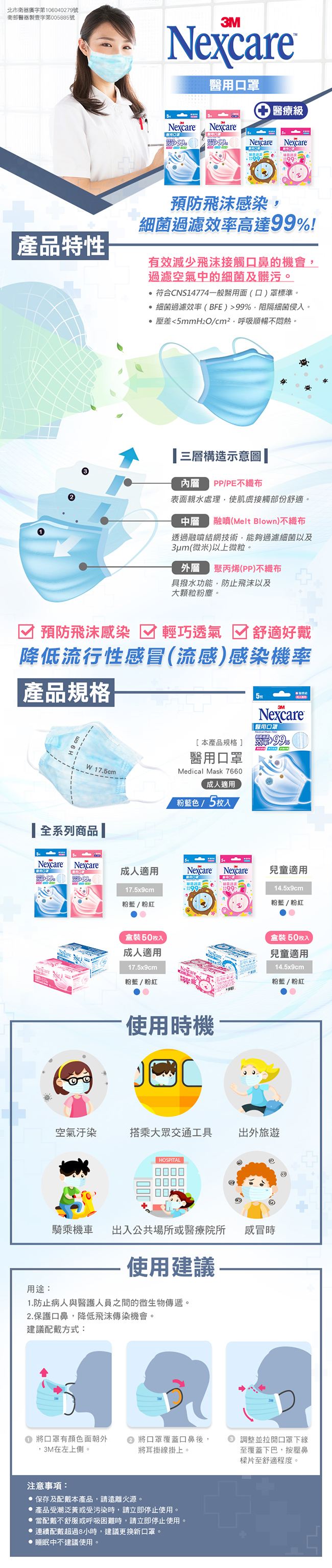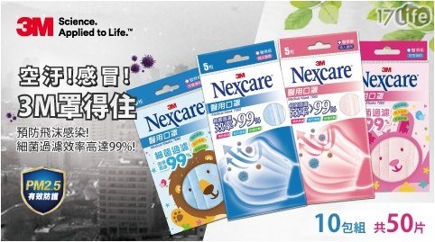 3M Nexcare成人用口罩(5片/包)共50片入-粉/粉本季折扣活