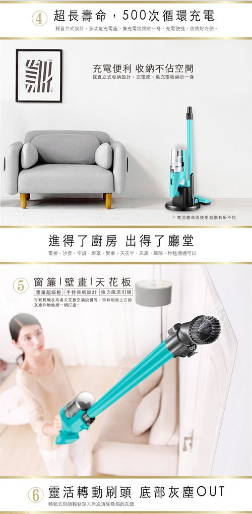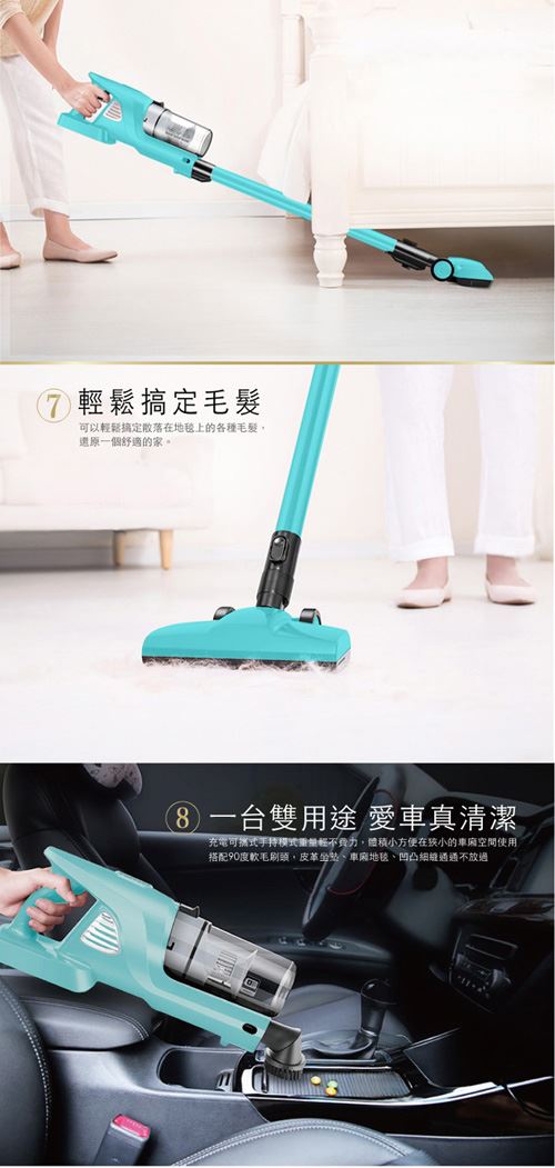 充可式手持模式重量不力,小方便在小得空使用,搭配90度毛刷,皮革坐,地毯、凹凸通通不放。
