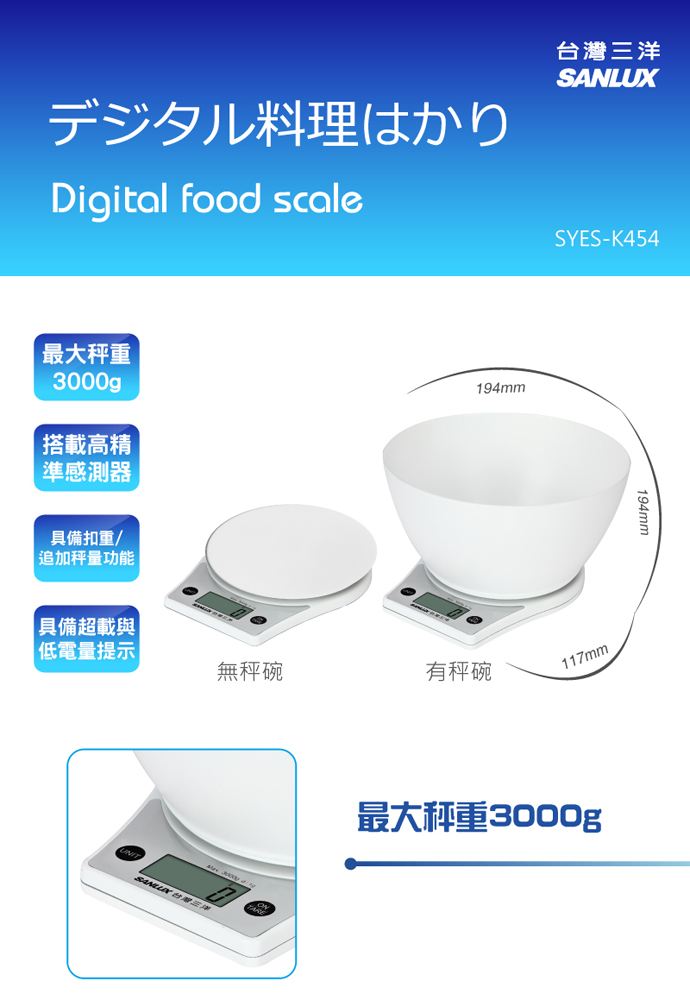 【台三洋】位料理秤 SYES-K454 (附量碗) ,推,箱,CP值,,,便宜,惠,介,排行,精,特,周年,,限
