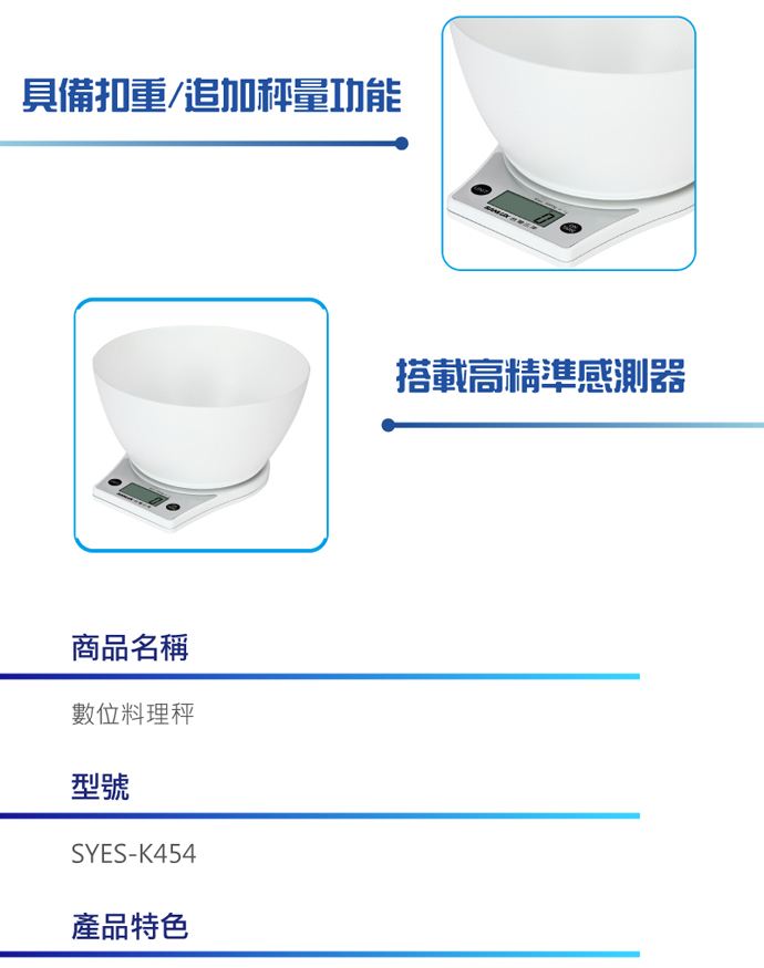 【台三洋】位料理秤 SYES-K454 (附量碗) 的品介在下面,