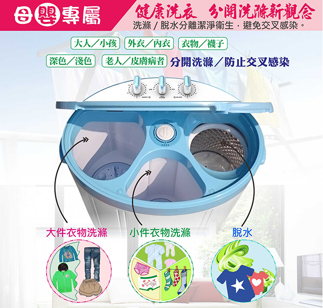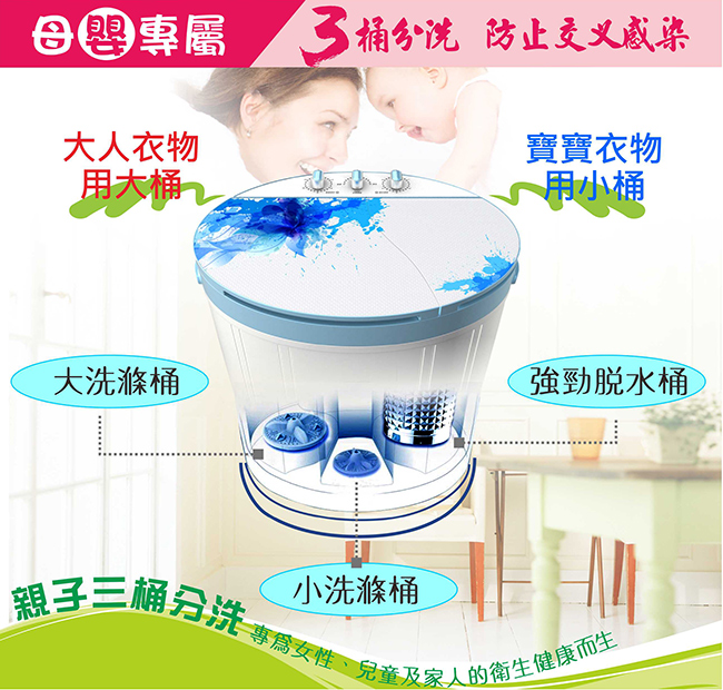 商品息特★三桶分洗,生。 ★三槽三,洗可分。 ★大人小孩分洗,避免交叉感染 ★省水省,外宿租屋必。