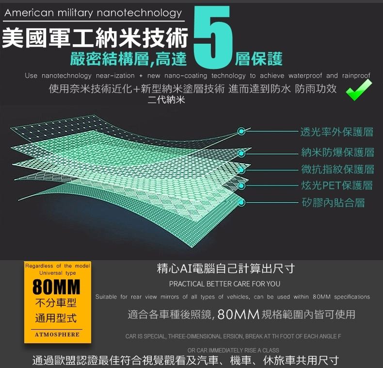8CM是最佳大小商品息特二代利米美技 防水去防雨防炫 安便利快速 耐用 持久 速通用尺寸格免裁剪 汽 超大80MM