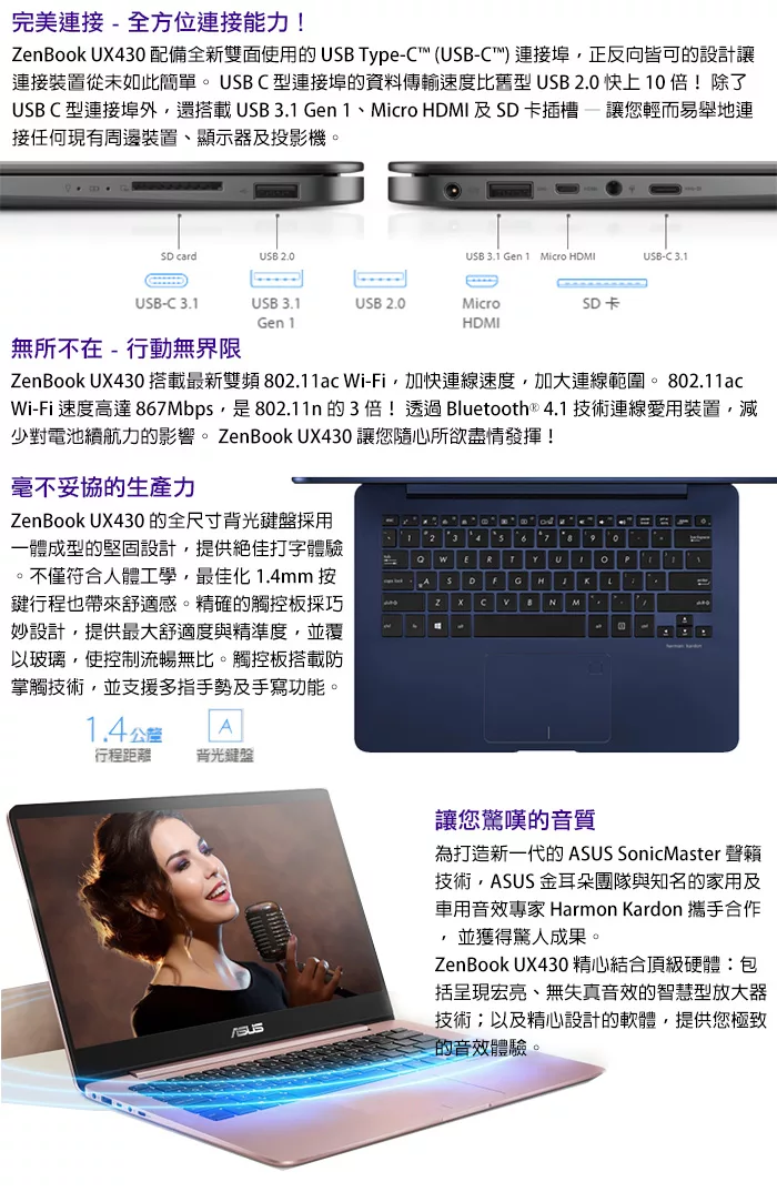 UX430UQ-0092C7200U 玫瑰金★加送保膜/滑鼠/清/usb充器/16G身碟(含免文) ,推,箱,CP值,,,便宜,惠,介,排行,精,特,周年,,限