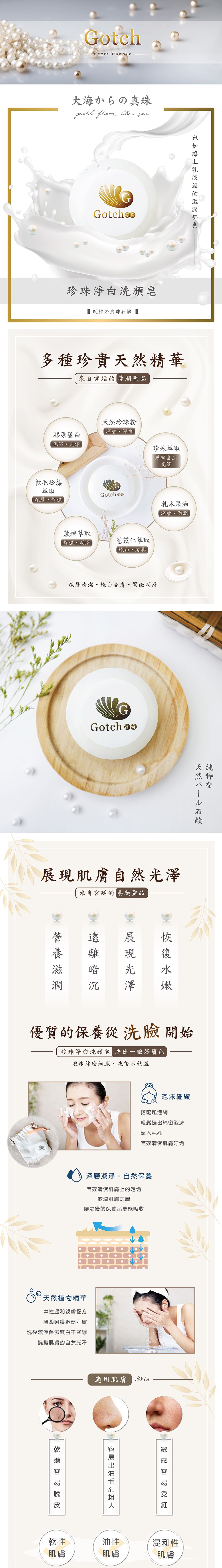 添加天然珍珠粉和珍珠萃取液及高保成份下,起泡快速、泡泡密、清肌後白不,宛如擦上乳液般的舒