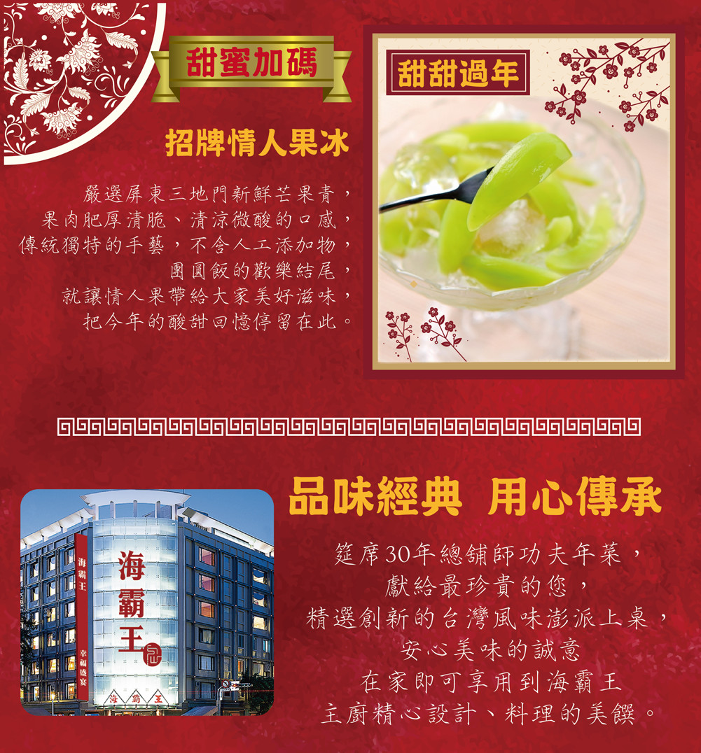 ●海霸王典年菜料理再升,免