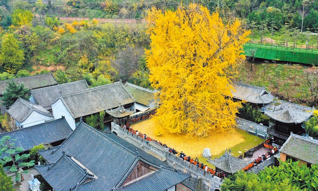 有株杏,就跟古音寺的同一,在嫩的冠中,彩出耀眼的金.