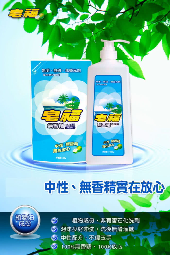 【惠】【皂福-20年】香精-低泡沫洗精充包800g X 12包(植物油)-到付款
