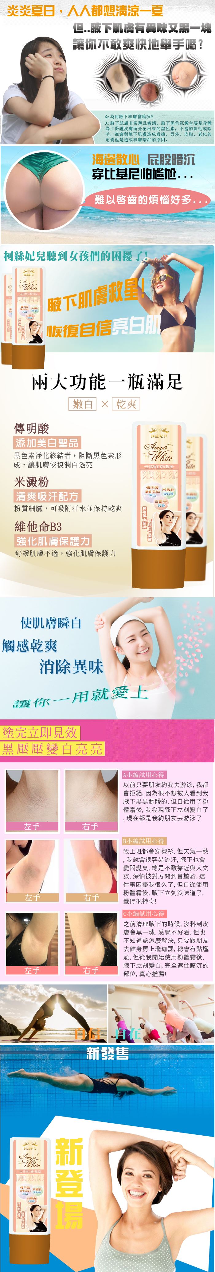 保持腋下肌乾爽嫩白,特殊香料可改善味, 且地清爽不黏;促肌代老角,改善腋下肌暗沉乾燥的!