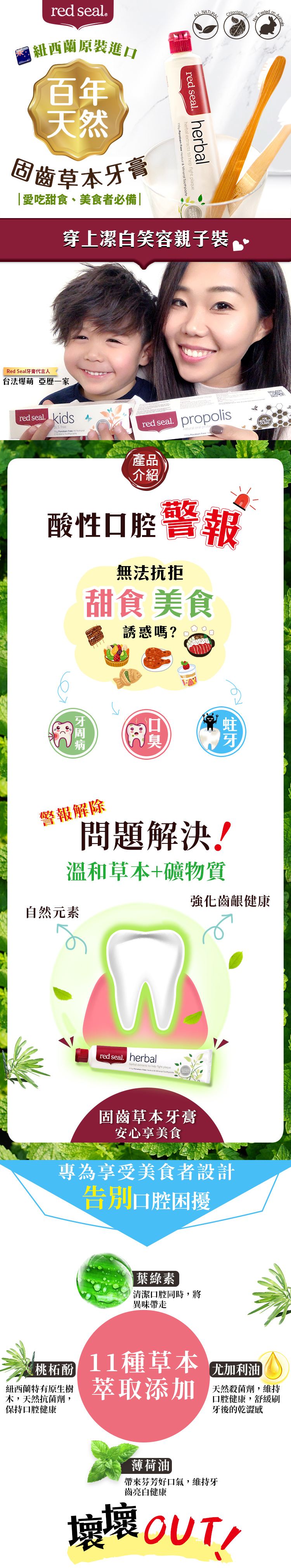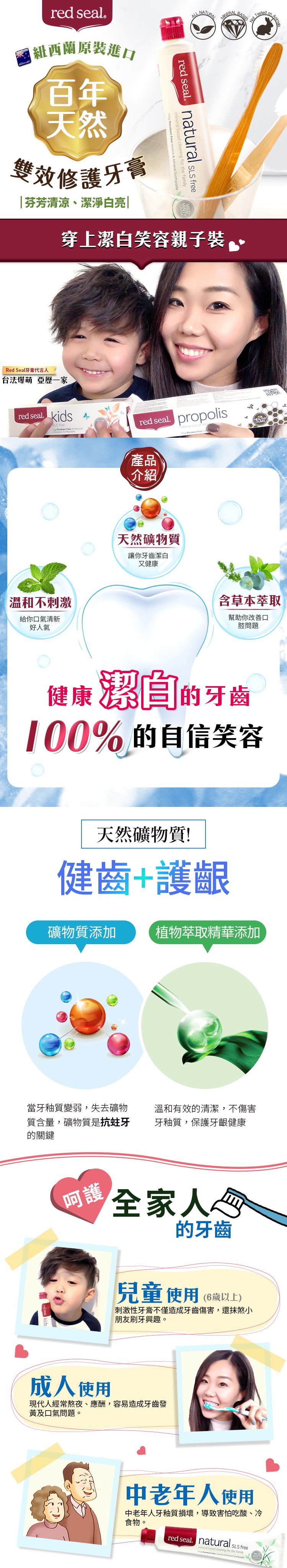 全家人的牙膏,清/清新/安心,RedSeal西原口百年天然牙膏!