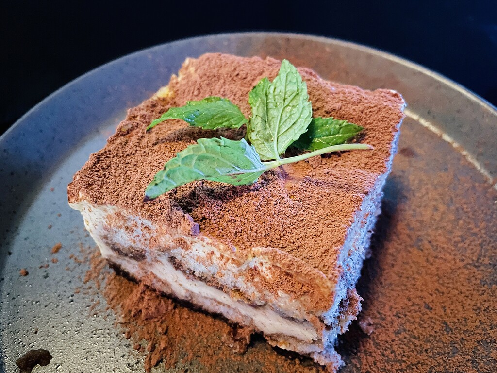 典姆酒提拉米 最上撒香可可粉 放色薄荷