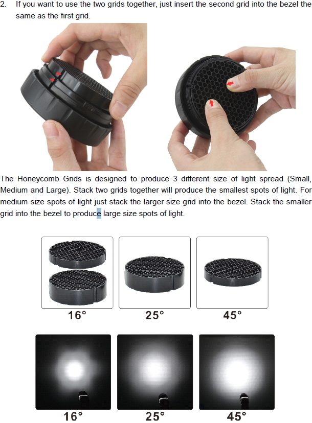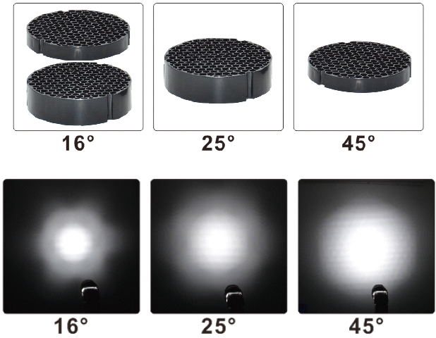 ◆3聚光效果(16° 25° 45°?,25°及45°蜂巢片合在一起就成16°