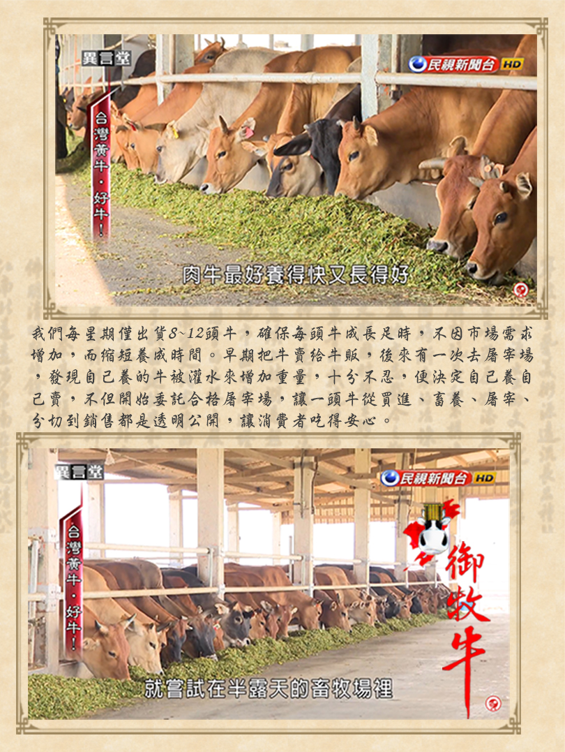 另外我成立「御牛殿食堂」,目前共4分店,生源到餐桌感受御牧牛所持的品美味。也感中天新(食地勘查)、年代新(台向前)、民新(言堂)、三立台(食尚生活家)、壹刊肯定。