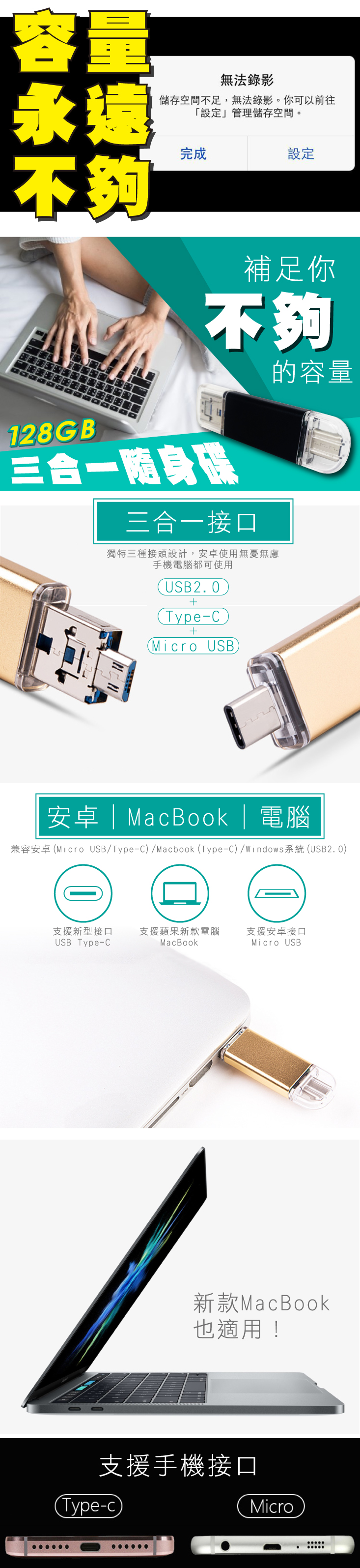 而且本姑娘在天前就上做好三合一128G高速身碟 (Type-C、USB、Micro)相功,比之後,定在啦~~~