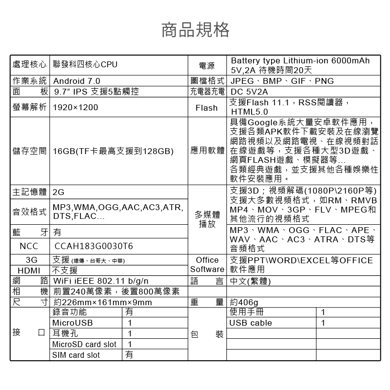 ★ Android 7.0 ★ 16:9幕 ★ 8核架(CPUx4+GPUx4) ★ 科四核心CPU ★
