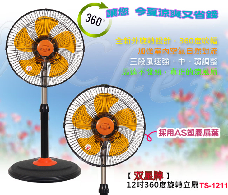 不然有【星】12 360度工桌立扇/扇 TS-1211在是有不方便,在路上比找了久,於便宜的【星】12 360度工桌立扇/扇 TS-1211了