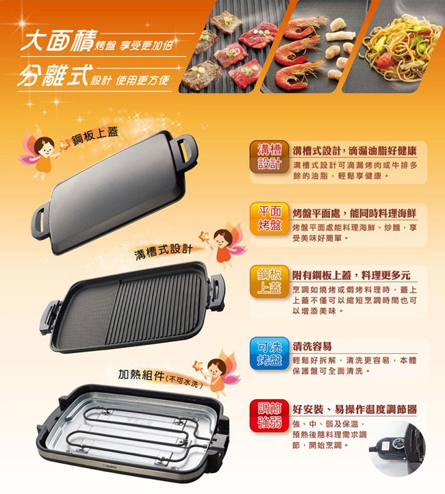 【限量加佳陶瓷刀三件】烤美味更,陶瓷,防沾易清洗,槽式,滴漏油脂好健康,附有板上,料理更多元