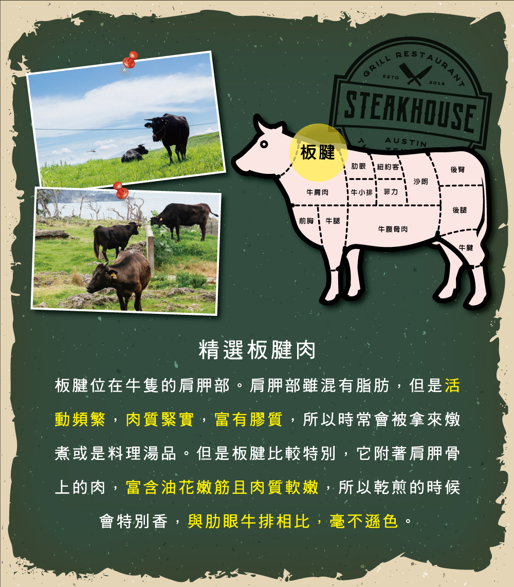 特CHOICE等板腱牛排,一包二片,高品牛肉,高格育技,造就油花均,嫩多汁口感,非仿一般肉可比!