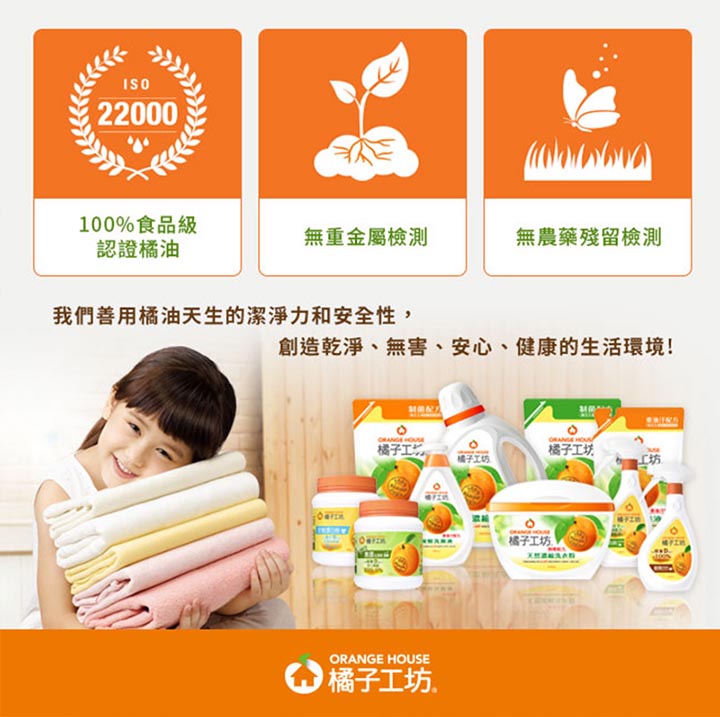 格:1800mlx2瓶+1500mlx4包橘子工坊 • 餐具就是食物 • 衣服就肌? 持一天然原料成,食用橘油植物性配方,香精真安心 。