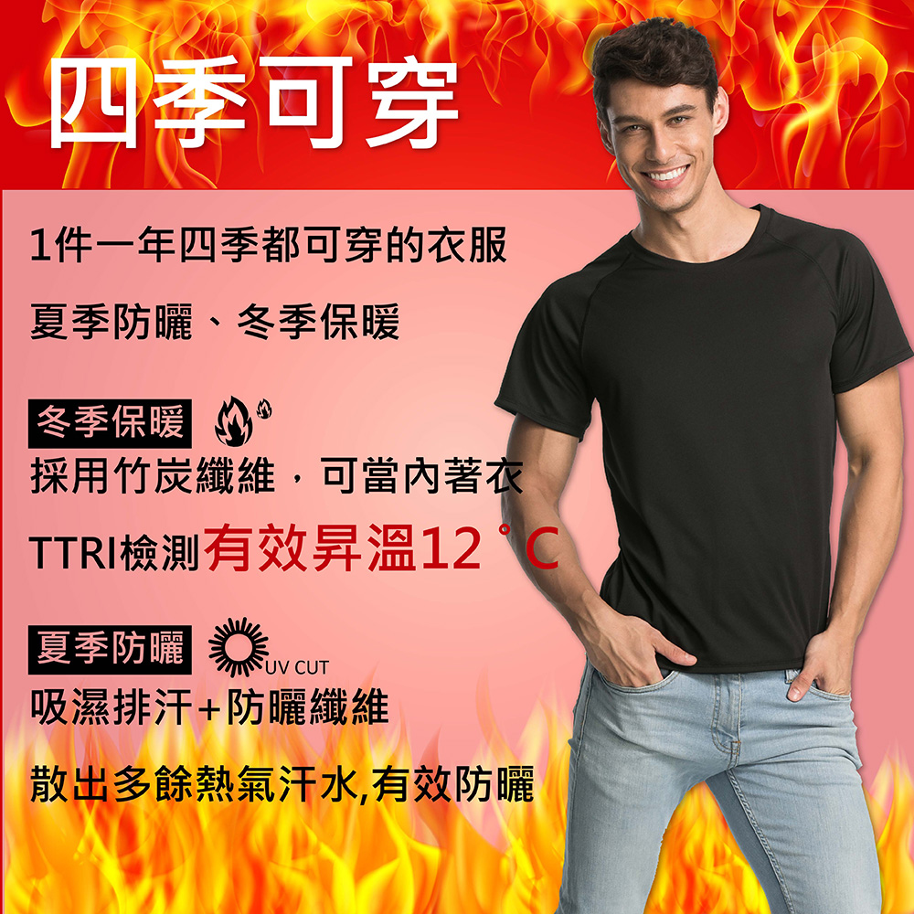 CP值爆表,四季皆可穿,冬穿有效升蓄,夏穿吸排汗,竹炭除臭速乾,防抗UV,全功能永久性,穿外搭都合。