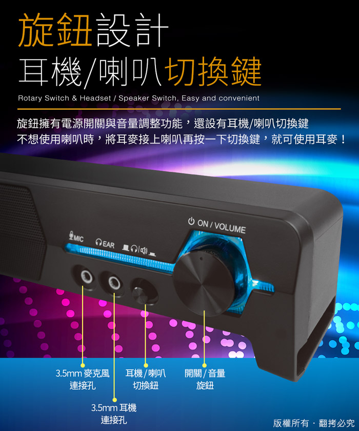 5.可耳克接至主音箱前方3.5mm孔位