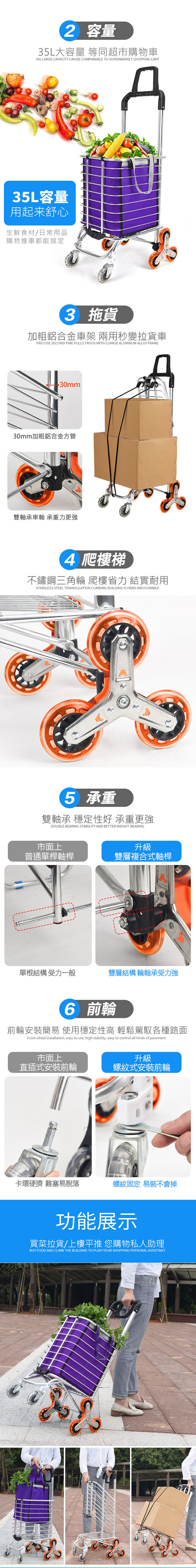 ●30mm加粗合金管,固耐重,35L大空,再多都得下!