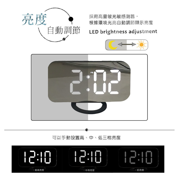 3.亮度:用高敏光敏感器,可以根使用境光亮自示亮度,也可以手置高、中、低三亮度。