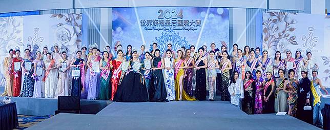名媛冠慧、林致漩、林依,人冠林儒、明珊、沛,典雅冠宜、童玉珍、婉容,著后冠出也正式宣布2024年「世界旗袍皇后大」落幕.