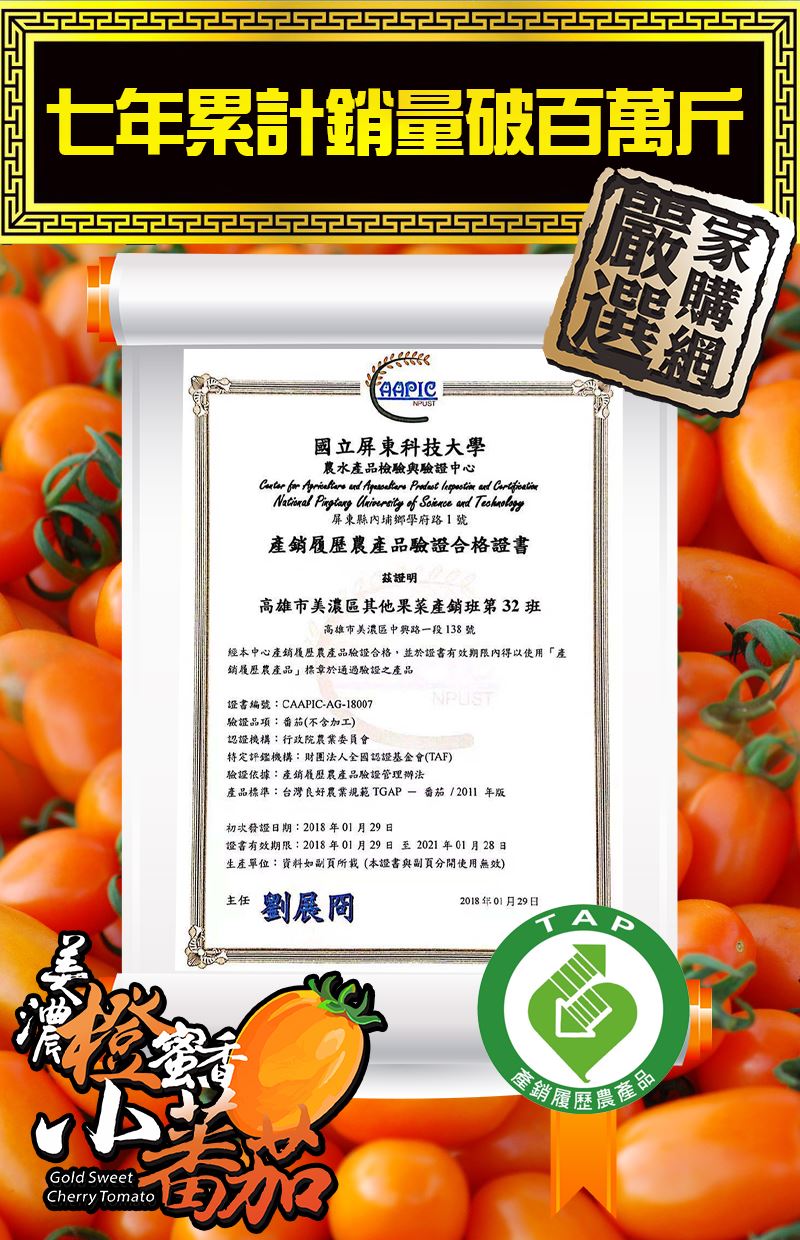 最近生日快到了,偷偷打後知道最近想 冬季地表最的水果-履高雄美橙蜜香小蕃茄(5斤/箱) - 1箱"
