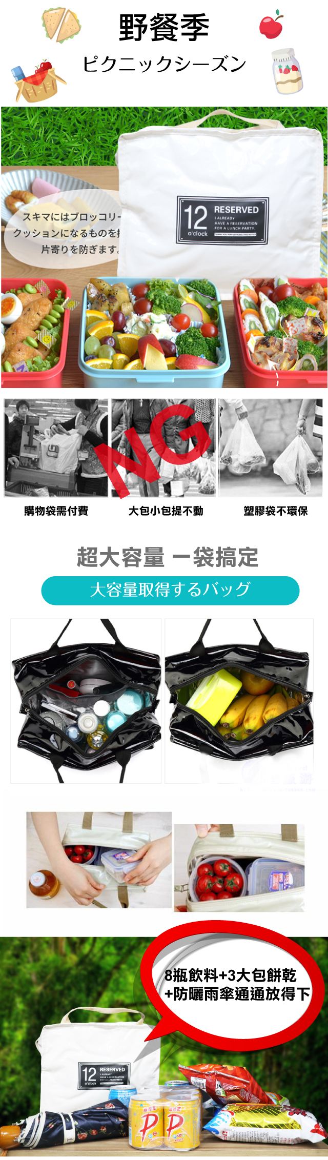 ●一包多用,可作盒包、保包、化包使用,外出逛街、野餐方便