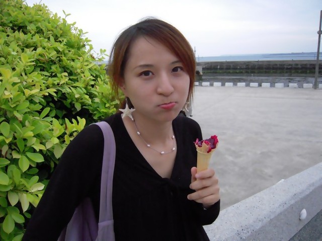 到跨海大拍照吃仙人掌冰~太冰了....染上紫色的唇