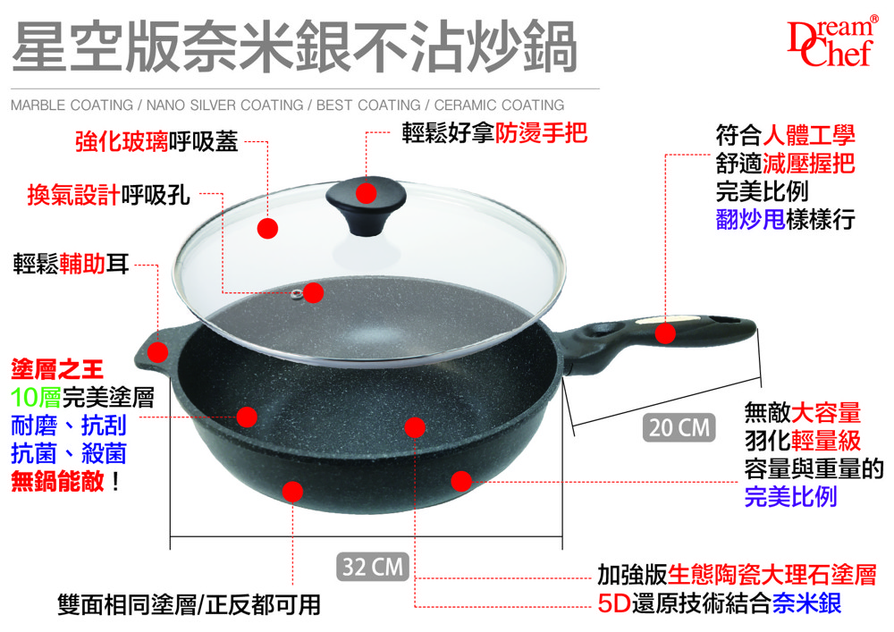 【DreamChef】陶瓷大理石奈米不沾抗菌(32cm深炒++菌砧板) 共" ,推,箱,CP值,,,便宜,惠,介,排行,精,特,周年,,限