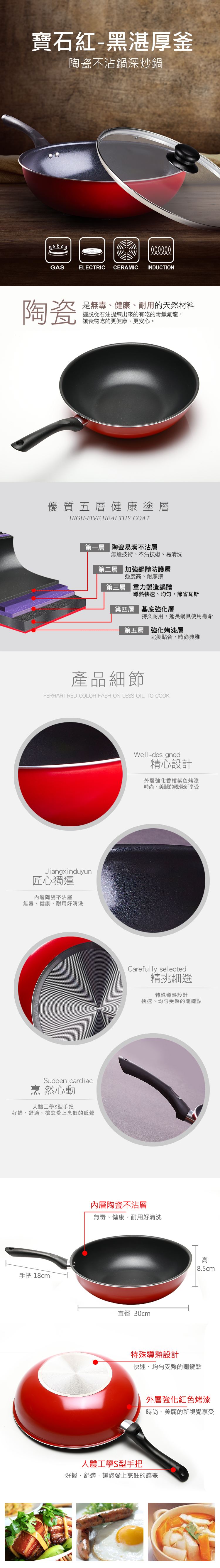 4. 30cm深炒,煎、煮、炒、炸都搞定,符合代家庭的烹需求,搭配核晶陶瓷的,更具特色,是您在特的日子,感恩咪最面大方的。