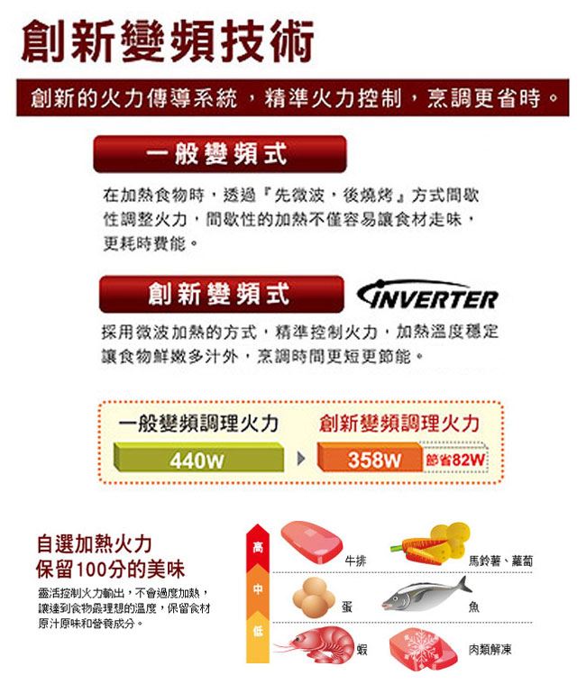 全新技,微波出力1000W,6段火力,19自烹,便利性平板式腔,大空及便利清洗,居家料理必手!