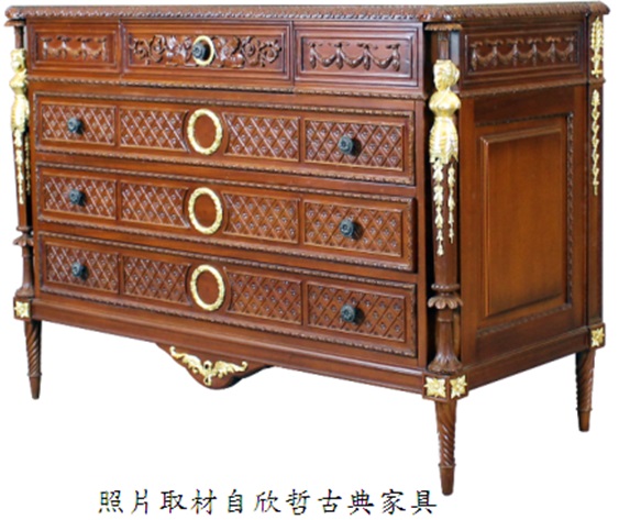 十八世起,桃花心木跟墨水造成了英西班牙的多次 也了一洲家具造的金期,甚至被桃花心木代(巴洛克家具、洛可可家具、新古典家具、帝格家具.....)。