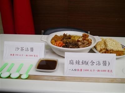 健局莉婷表示,麻辣加上沙茶沾的量2400大卡,且含量近6400毫克,已超每人每日取量的2.5倍,若要消耗多量,需慢跑超3小才行。