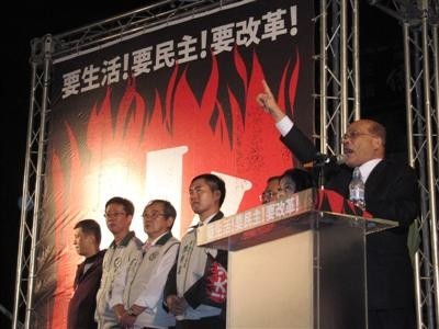 民主步「火大列」今天抵新北市,民主席昌和前主席蔡英文先後上台造,呼民站出表不。