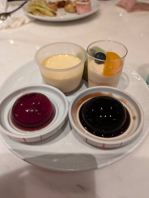 次甜只拿果+苓膏+布丁....抹茶蛋糕1小...全部一起分享...