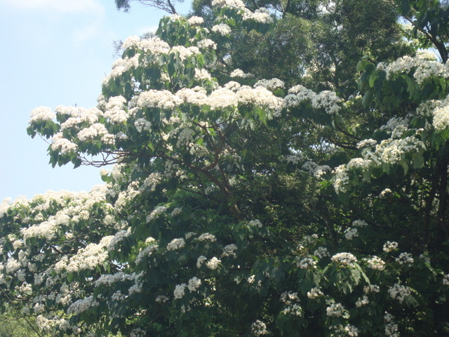 前年都提前放的油桐花,今年於五月才放。名符其五月雪。