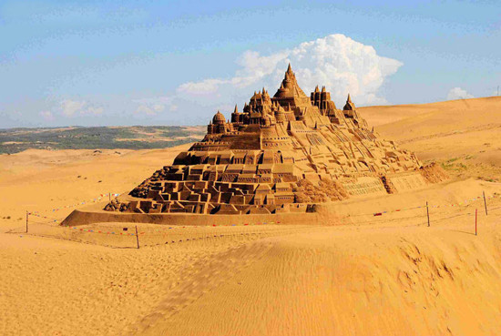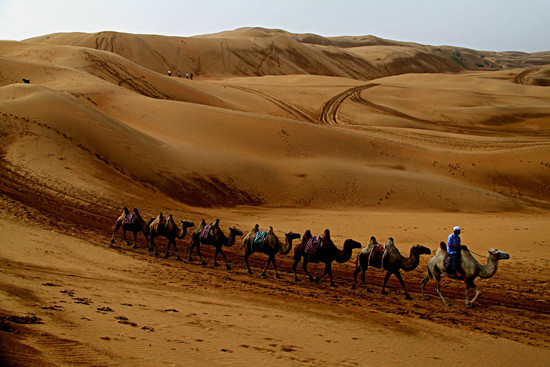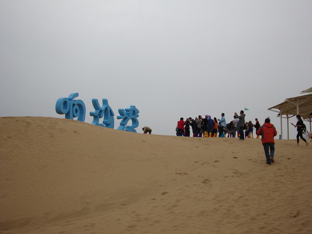 第四天,行程到位於鄂多斯高原的布其沙漠,海拔一千多公尺,大夥必搭乘去,的沙非常柔乾,我每人都自掏腰包承租防沙鞋套,方便沙丘上行走。沙漠一望就是沙,十分,怪乎形成的沙丘高低不同,坡度四十五度,坡面百米,人爬上沙丘端往下滑,沙子出,因此布其的沙子唱歌,沙之名因此不而走。