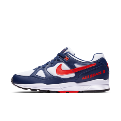 Nike Air Span II 男鞋採用布質結構與合成皮革表層,加上 Max Air 氣墊,打造輕盈緩震機能。