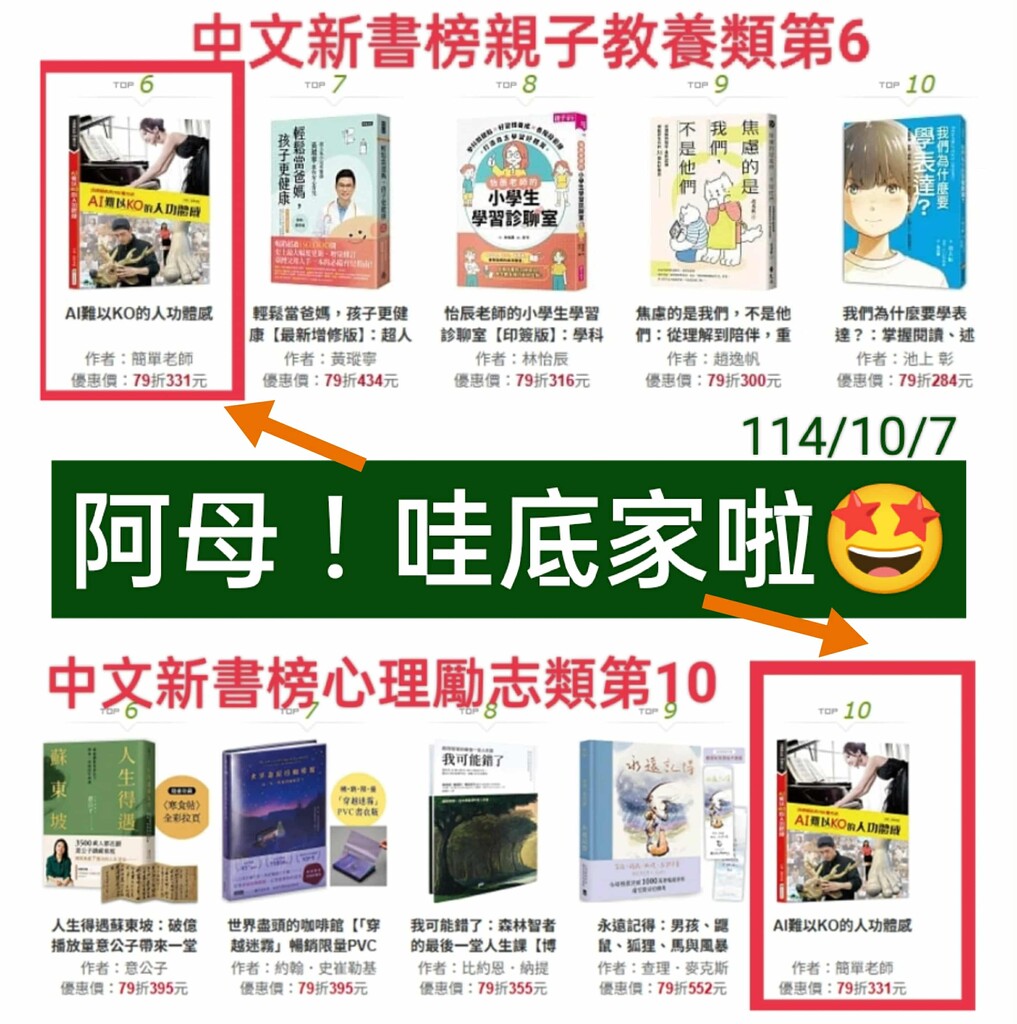 AI快速化,多工作一夕消失,孩子的未何去何?前瞻未,造力、同理心、巧性、有度的人情和感接,以及面非境和未知的勇,才是AI以KO的核心能力。我法替孩子好一切,但我能予陪伴祝福:《AI以KO的人功感》,成子未的、孩子探索生涯的起,也成和孩子肩前行的最佳考。