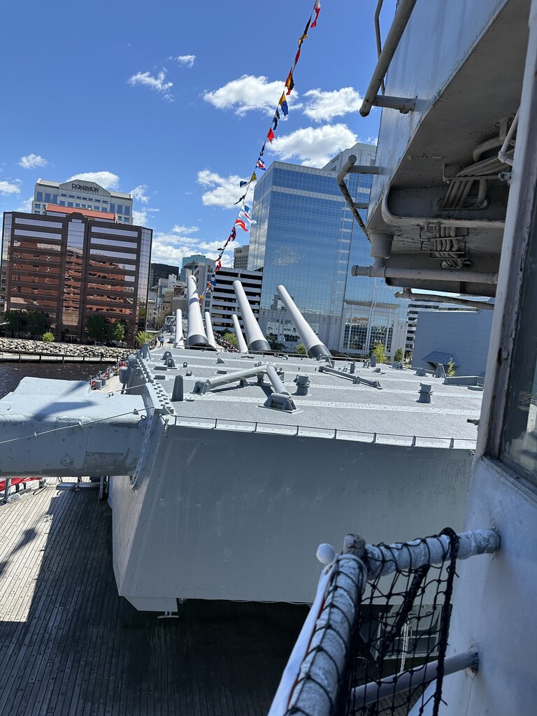 河岸有一海博物,及退役後的 USS Wisconsin BB-64 ,放大。我不是事迷,但有一睹服役於第二次世界大、,及 Gulf War (伊拉克、柯威特)的超,我不。