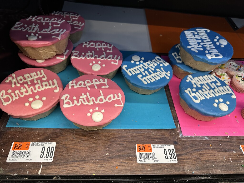 今天照例去物用品店毛小孩的零食,趁他全店八折,定他 Kylo 生日蛋糕或乾。