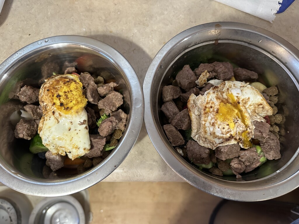 生日天,我提早下班,去超市了牛肉,毛孩的晚餐加料,Rosie 的肉量是一的,但有稍稍 Kylo 大一,竟是星嘛!