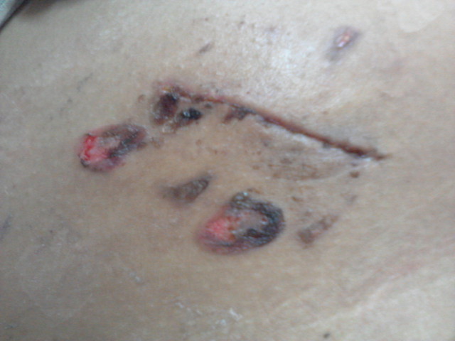 我住院住了五天 然中我也曾忍著疼痛叫姊姊我洗