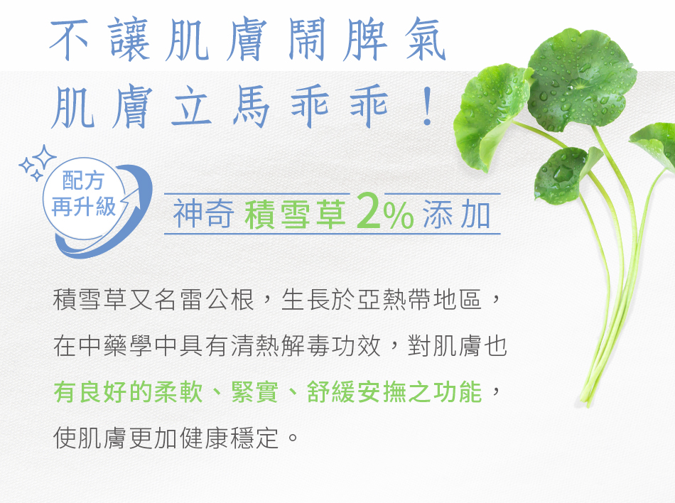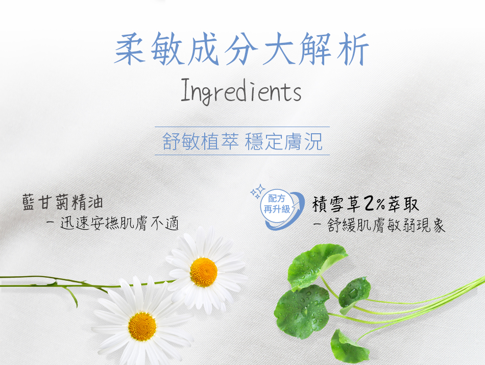 甘菊雪草舒敏修,在肌不安感到力不,清爽同具有保安功效,保功效。 升版配方在添加雪草,又名雷公根,有「植物生」之,生於地,在中中具有清解毒功效,肌也有良好的柔、、舒安之功能,使肌更加健康 定。SPA等超,特殊的角散射水,可加速成分的透吸收外,更柔呵的肌,肌最安心的。